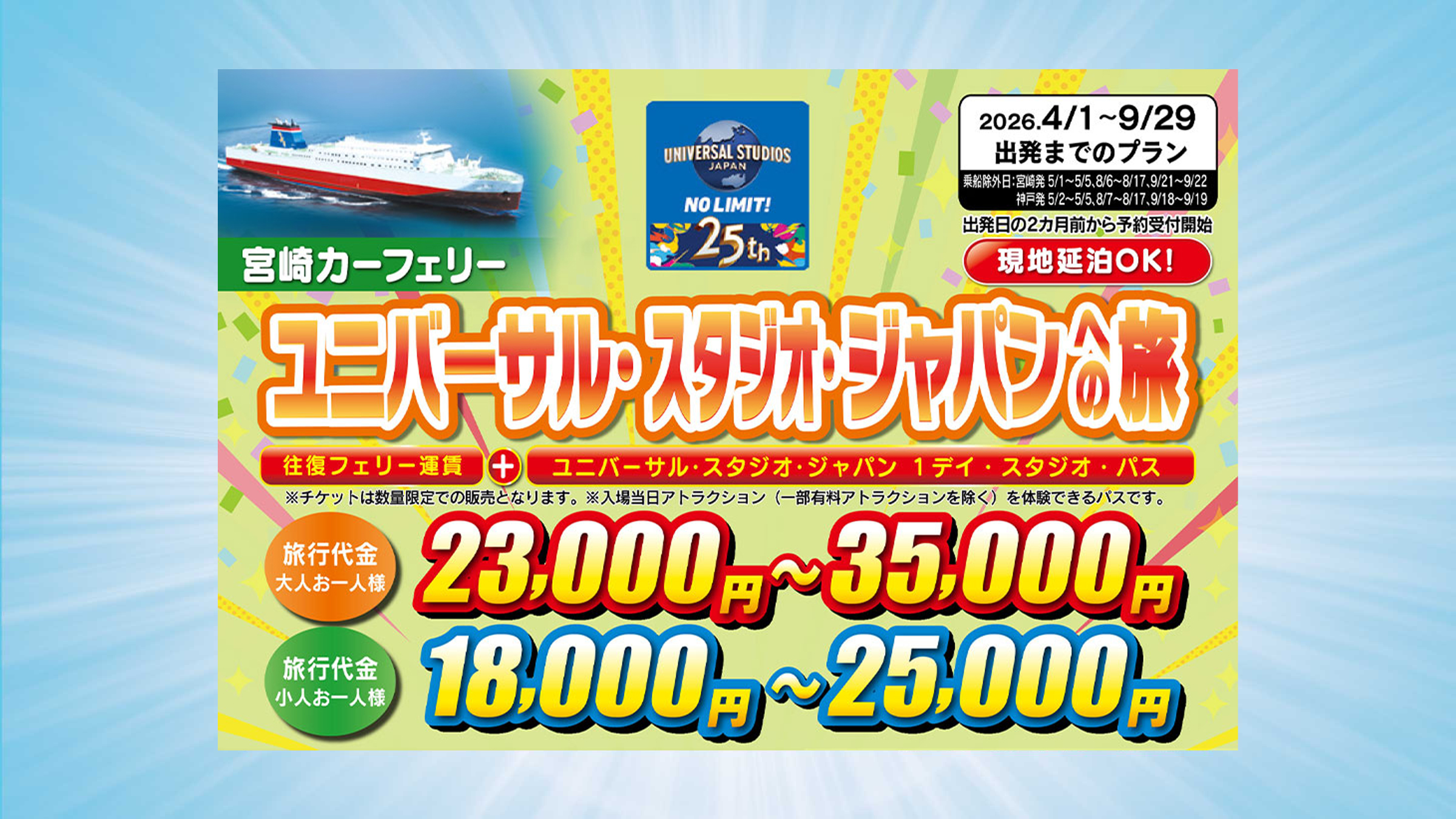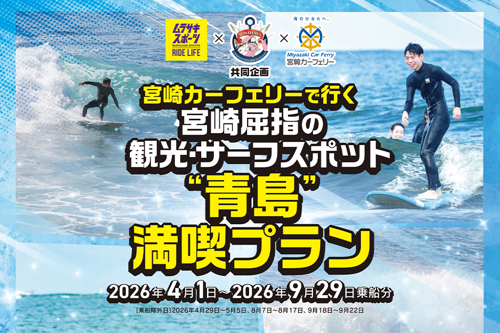 宮崎カーフェリーは日没頃に港を出港し、朝日と一緒に目的地に到着するナイトクルーズ。夜の静かな海を航行する船ではイベントや美味しい食事など、船旅ならではの楽しみをご用意しています。