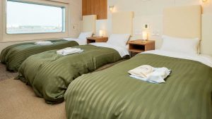 TOP 船舶案内 客室のご案内 ファーストツイン(全16室) お部屋について ご夫婦やお友達とのご旅行にもおすすめの、定員2名様のお部屋です。 ベッドベッド間取りアメニティセット 停止 詳細情報 お部屋タイプ洋室ツイン 眺望海側(窓あり) 定員2名 お部屋の広さ約10㎡ ベッドサイズ199cm×89.5cm 設備・アメニティトイレ、羽毛布団、液晶テレビ、ドライヤー、空間除菌消臭装置、 電気ケトル、マグカップ、バスタオル、ナイトウエア、スリッパ、 アメニティセット